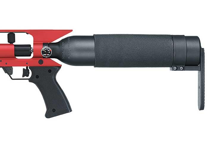The AirForce Condor delivers from 600 fps to a rip-snorting 1300 fps (in .177)- and it’s recoilless! Accurate (1″ at 50 yards) and powerful- this PCP offers extreme flexibility. It has an 18″ Lothar Walther barrel (1:16 twist). You can also buy 12″ and 24″ barrels. Change-outs are easy and don’t require any special tools- but the gun will be unsilenced. Built in the USA.