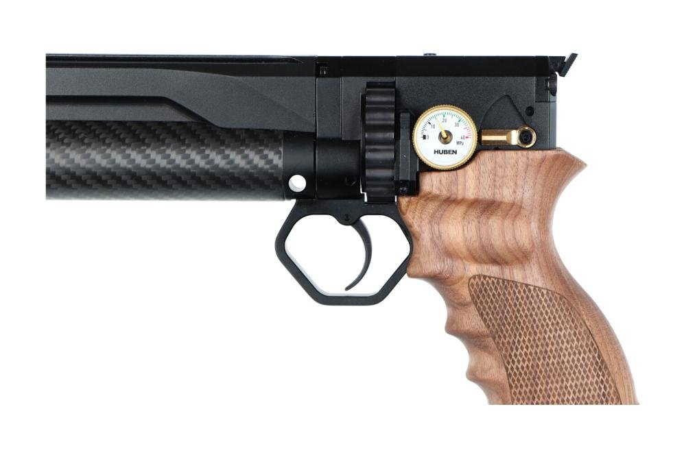 Huben has designed a super nice new semi-automatic PCP pistol, based on the one Gregor Kamensek built a few years ago. The power is easily adjusted with an Allen key for fine-tuning.